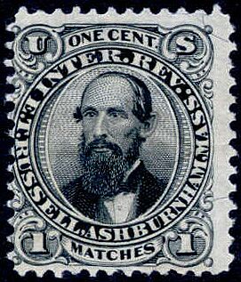 The Russell factory was located in Burrageville, Massachusetts. Stamps for its product were issued from February of 1867 to January, 1872. 3,182,500 were issued on old paper, and 66,000 on silk paper. The copy above is on silk paper.