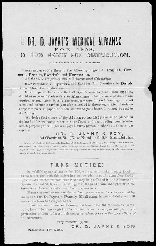 Dr. Jayne & Son survived well into the Twentieth Century, as can be seen from this almanac cover.