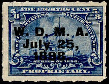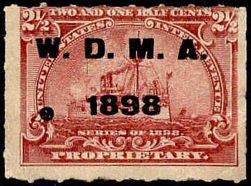 The World's Dispensary Medical Association used general issue proprietary stamps to pay the Spanish American War revenue tax. Several types of printed cancels are known, as well as handstamps.