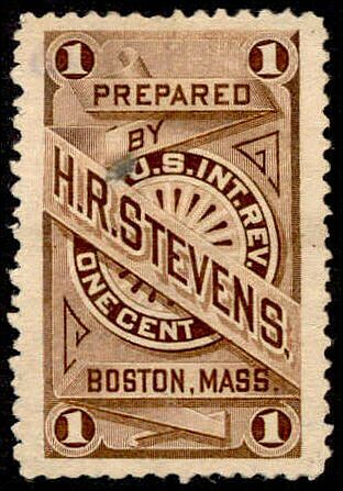It is possible that Vegetine was sold in seventy-five-cent bottles until sometime in 1877. General issue three-cent stamps are known with Stevens cancels, as well as some two-cent stamps.