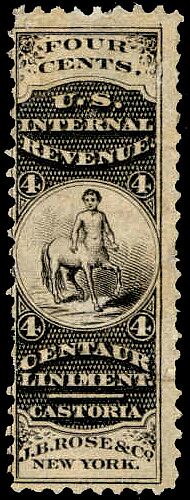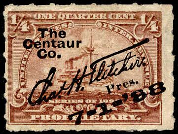 When patent medicines were taxed again under the 1898 Law the Centaur Company overprinted general issue stamps for its use. It used several denominations other than the ones shown, as well.