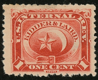 The one-cent Kidder and Laird stamp was printed from June 14, 1881 until March 2, 1883. 1,102,500 were issued on watermarked paper.