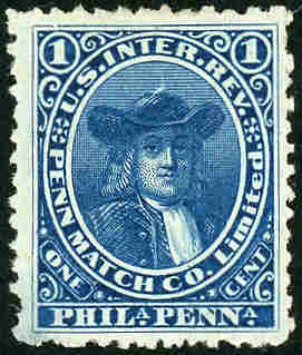 It is not certain that the Penn Company manufactured matches. It may have been a distributorship for Canadian or English matches, as the company name includes "Limited." The stamps were issued from October 31, 1881 until February 14, 1883. 3,696,000 were issued on watermarked paper.