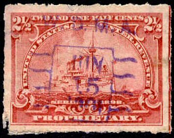 The World's Dispensary Medical Association used general issue proprietary stamps to pay the Spanish American War revenue tax. Several types of printed cancels are known, as well as handstamps.