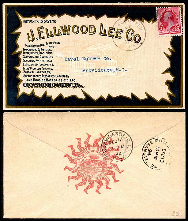 At least the "wheel of legs" logo was used by J. Elwood Lee well before the private die stamps were printed, and was not designed for that purpose. Here it is on an 1894 cover.