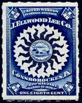 The J. Elwood Lee Company was a relatively small outfit based in Conshocken, Pennsylvania. One of its traveling representatives was Lewis Robie, who was a collector and dealer specializing in private die proprietary stamps. He recognized the opportunity to sell those of L. Elwood Lee at a profit, and late in 1900 the company ordered five different denominations of stamps, probably only needing one. Since the tax was removed as of July 1, 1901, there would have been little chance to use them in any event.