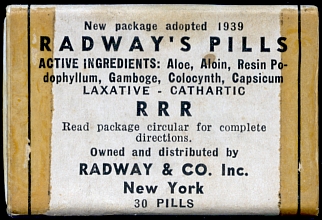 A box of Radway's Pills from the late 1930's.