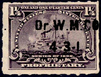 The company also used general issue proprietary stamps. These were rubber stamped or canceled with either "W.T. H. Co." and the date, or as above.