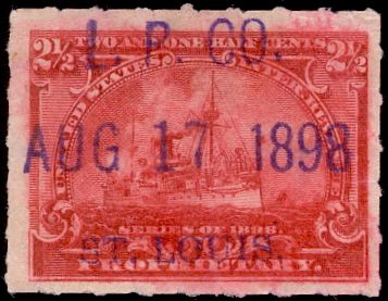 Originally the Lambert provisional stamps were listed as being black on white, but no such have been seen. The red on white stamps are one of the relatively more common provisionals and were most likely the basis for the original listing. The Lambert Company indicated that 6,500 were printed.