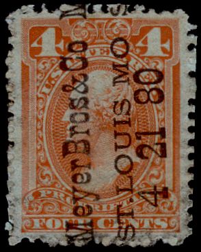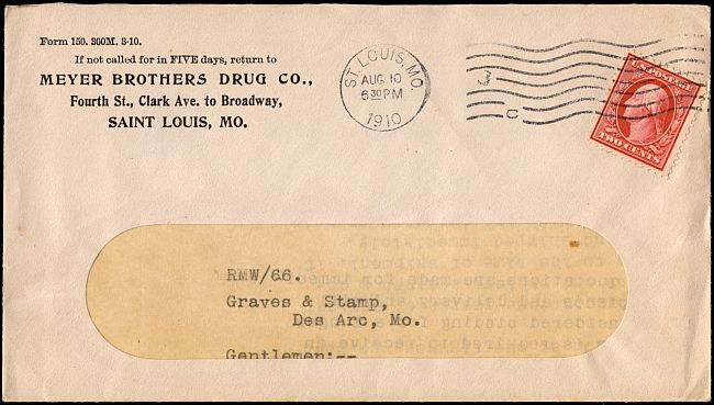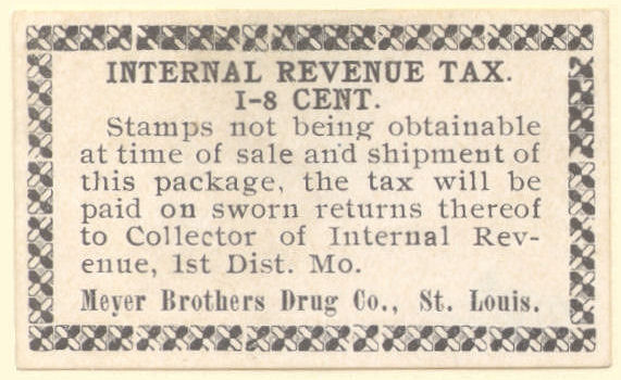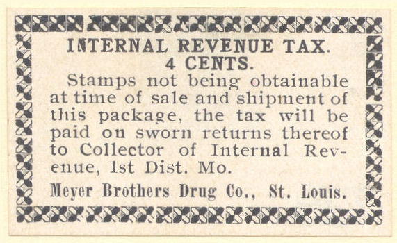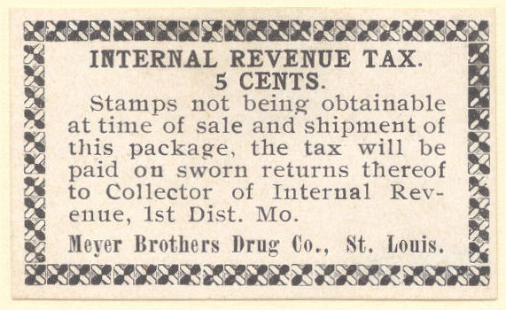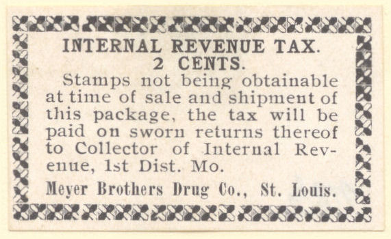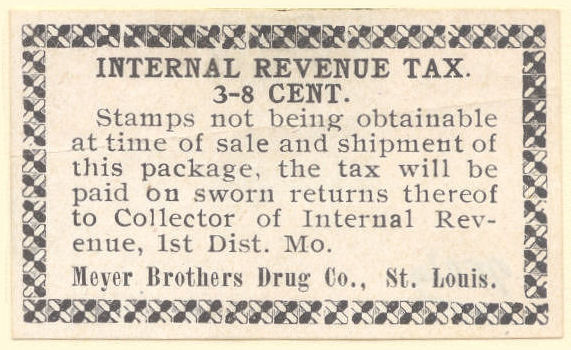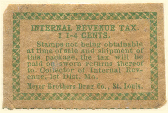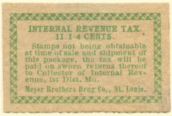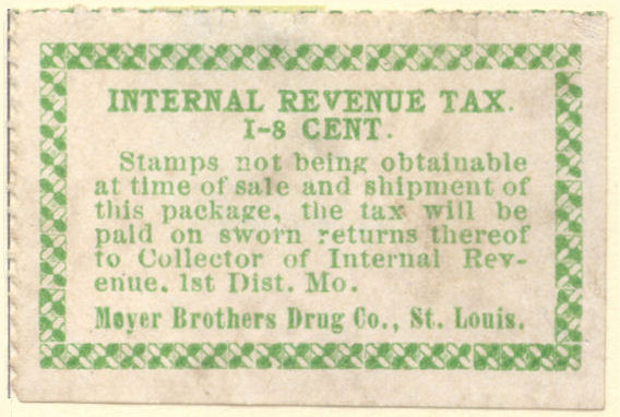 A Meyer Brothers cancel on a third issue proprietary stamp. This would have been used on a product, not a document.