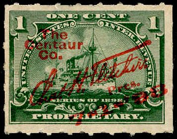 When patent medicines were taxed again under the 1898 Law the Centaur Company overprinted general issue stamps for its use. It used several denominations other than the ones shown, as well.