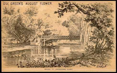 A trade card featuring Green's August Flower and Boschee's German Syrup.
