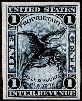 Hall & Ruckel survived well into the Twentieth Century. The company did not use private die stamps during the Spanish American War tax era. These "battleship" revenues show Hall & Ruckel cancels.