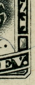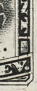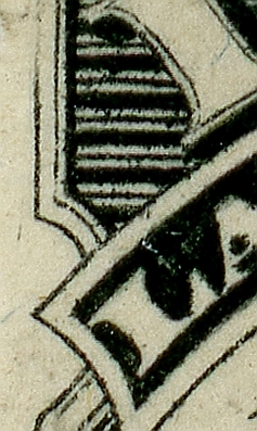 A double transfer on the one-cent stamp includes partial lines and dots over much of the design. Doubling of the design occurs below and to the left. Above, portions of the design without doubling are shown on the left.