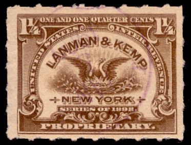 They also used private die stamps to pay the proprietary taxes imposed to help pay for the Spanish American War. 5/8 cents paid the tax on a twenty-five cent item. 360,000 of these stamps were printed and perforated first by rouletting, then later by hyphen hole perforations. This one was rouletted.
