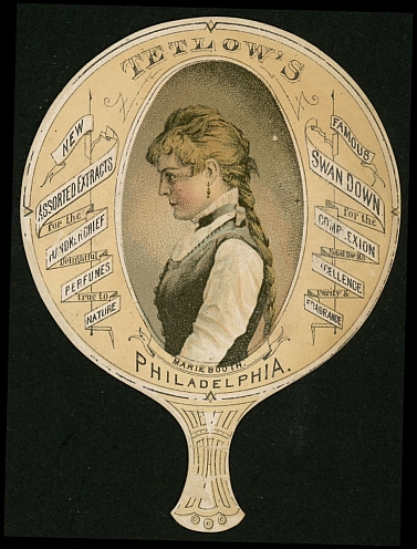 A Tetlow's trade card. Swan Down was one of their flagship products. Tetlow was a pioneer in producing face powder with zinc oxide in place of powdered lead as early as 1866.