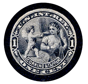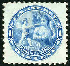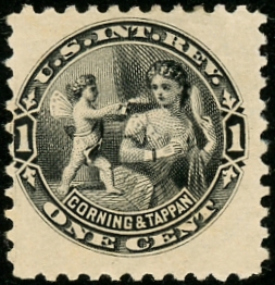 Corning and Tappan stamps were issued from late in 1878 through February 15, 1883. 4,268,360 were issued, all on watermarked paper. This includes both the printings in black and the ones in blue. Some of the black ones were die cut and some were perforated.