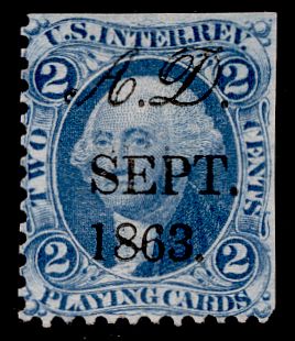 From August 1, 1864 to August 1, 1866 the tax on each pack of cards with retail price up to 18 cents was two cents.