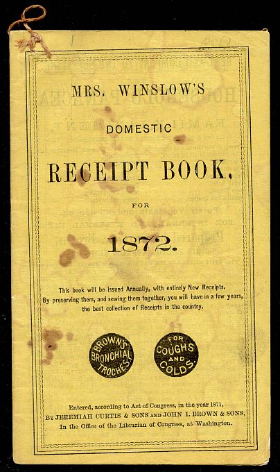 Mrs. Winslow's Domestic Receipt Book of 1872 was a joint publication of Jeremiah Curtis & Sons and John I. Brown & Sons.
