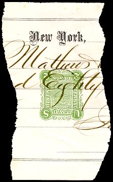 This is the discovery copy of the A9 invert. It is in the collection of Ron Lesher and one of the highlights of his exhibit of revenue stamped paper.