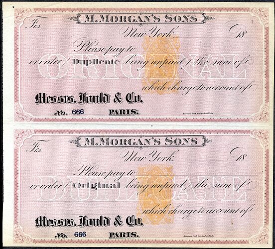 The top bill of exchange is the Original, and would only have been paid if the Duplicate, at bottom, would not have been presented previously for payment. Even though termed "Original" and "Duplicate," it made no difference which was presented first.