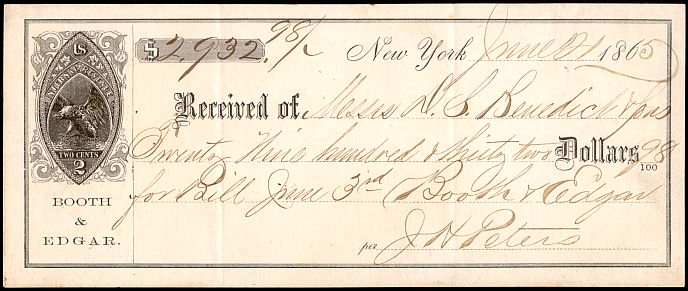 This is the earliest known usage of revenue stamped paper, from the first delivery. William Booth of Booth & Edgar was president of the American Phototype Company at the time. (Courtesy of Ron Lesher.)