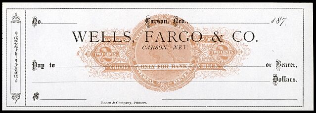 Unused checks or drafts with C22 imprints are uncommon. This one was issued for use in Carson, Nevada. It has a stub, which was graphically cropped for this illustration.