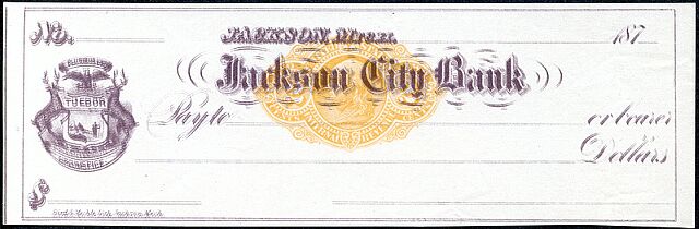 This unusual item is a partially printed draft with an F1 imprint. It serves to illustrate that by the time Type F was introduced the Internal Revenue Service was no longer examining checks in order to require instructive clauses, so otherwise blank stamped paper could be sent to check printers. The one in this instance did not finish printing the draft. |