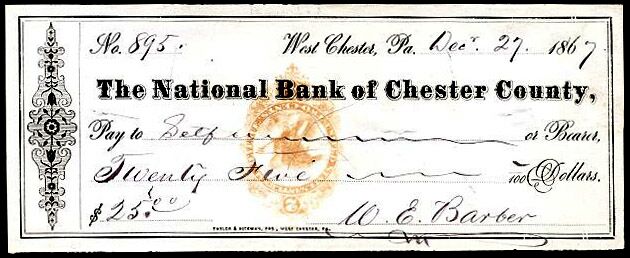 The next check in the series, number 896, also has an inverted imprint. (Illustration courtesy of Hermann Ivester.)