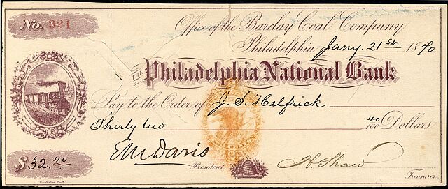 A check of the Barclay Coal Company with a strong double impression of the H3 imprint.