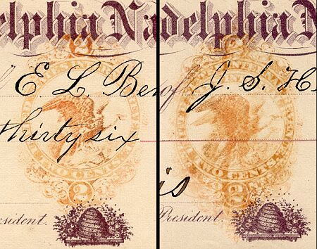 Close-ups of a normal imprint and the double impression.