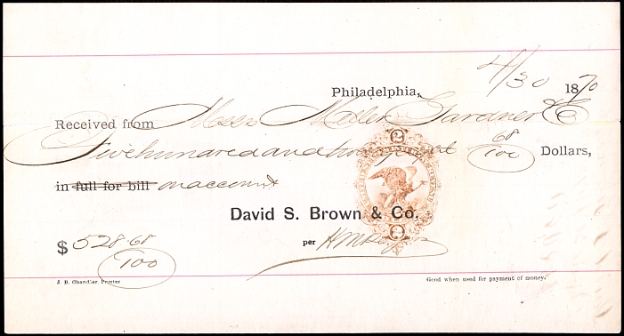 The seven-word instructive clause is only known on receipts of David S. Brown & Co. Image courtesy of Ron Lesher.