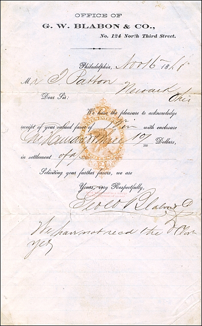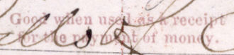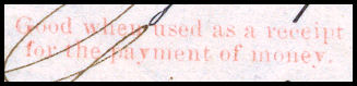 This receipt contains a red version of the eleven-word clause. The color is distinct enough to deserve its own listing, or the listing should be for "red (shades)" which could encompass the violet version. |