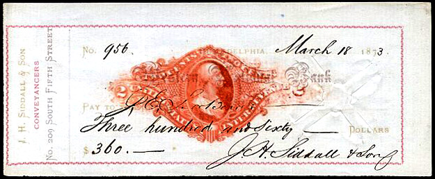 The imprint on this check has a strong double transfer. At least two copies of checks with this flaw are known.