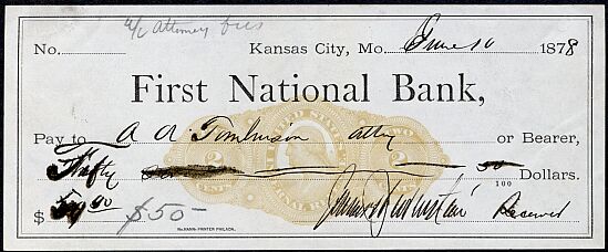A used check from Kansas City with a K11 imprint.